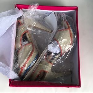 beautiful sandals in off white color , new in its box, small details of the paste but they do not make much difference, see photos for more details