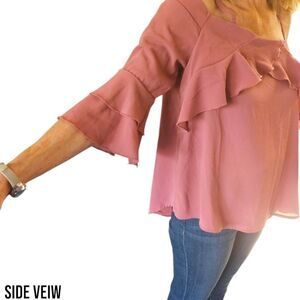 NWT CRAVEβFAME Women's Rosewood Mauve Ruffle Cold Shoulder Top Size Medium