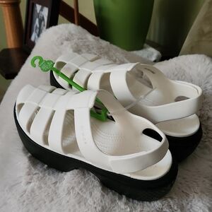 NWT CROCS White and Black Sandals with Platform Sole-Size 10