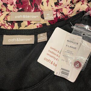 (NWT) CROFT & BARROW 2 Piece Blouse Set, Floral Burgundy/Black - XL