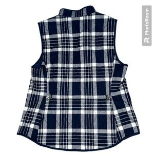 NWT CROFT & BARROW BLUE & WHITE PLAID FULL ZIP LINED DRAWSTRING VEST