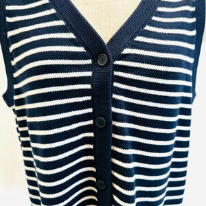 NWT CROFT & BARROW Women Sleeveless Button Down Blue Striped Sweater Vest Size L