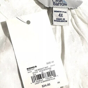 NWT CROFT & BARROW Women Sleeveless Pullover V-Neck 100% Rayon White Shirt Sz 4X