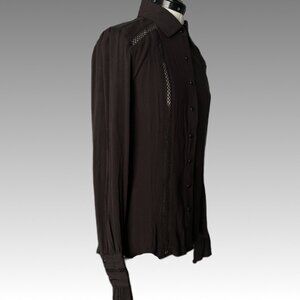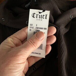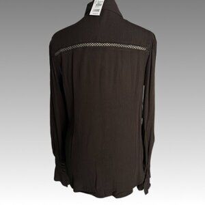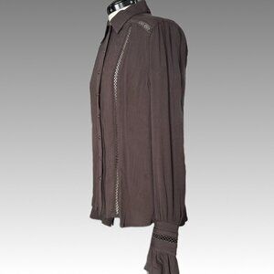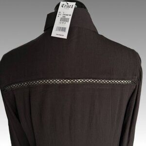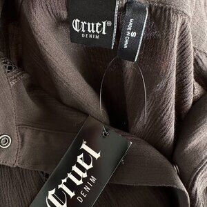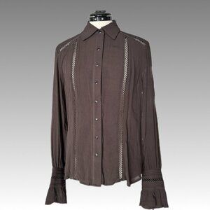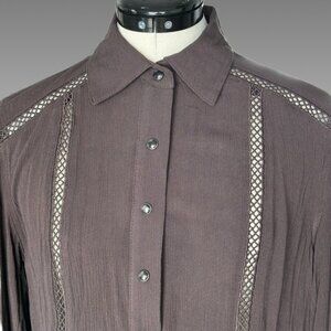 NWT CRUEL DENIM Crinkle Gauze Snap Shirt Crochet Western Prairie Romance Brown S