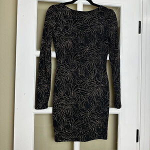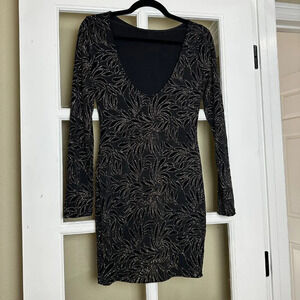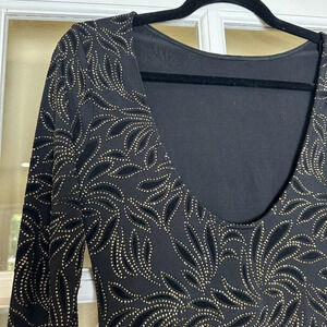 NWT CRYSTAL SKY Boutique Low Back Gold Detail Body Con Mini Dress - size Small