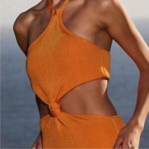 NWT CULT GAIA Cameron Apricot Halter Style Cutout Knotted Knit Summer Midi Dress