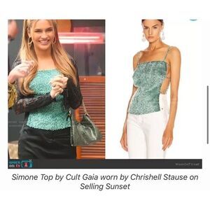 NWT CULT GAIA Simone Seafoam Top Small Silk Viscose Green Resort