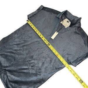 NWT CUPIO English Navy Velvet Rolled Sleeve V-Neck Blouse Size S