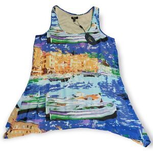 💥 NWT CUPIO MULTI COLOR MARINE FLOWY CHIFFON PRINTED TOP BLOUSE SHIRT SIZE M