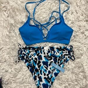 💙🖤NWT- CUPSHE GORGEOUS BLUE AND BLACK LEOPARD BIKINI SZ XL💙🖤