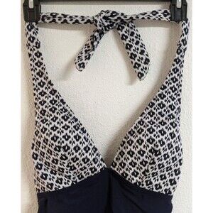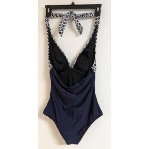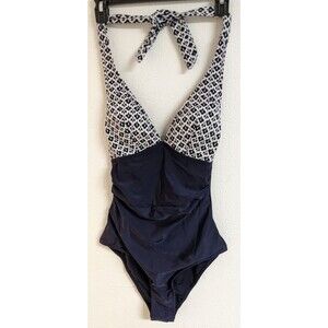 NWT~ CUPSHE Navy/White One Piece "Tummy Contouring" Halter Swimsuit SMALL