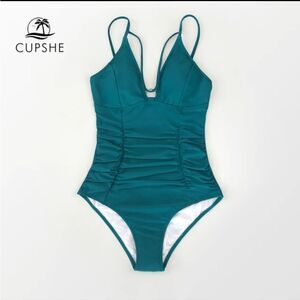 NWT CUPSHE Women's One Piece Swimsuit Tummy Control O Ring Ruched