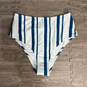 NWT CUPSHE Women's Striped Halter Bikini Bottoms Blue Size Medium