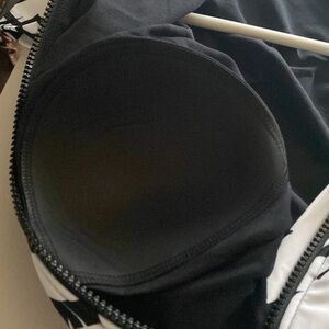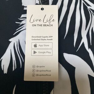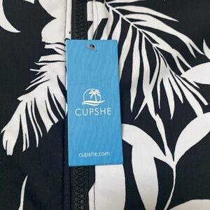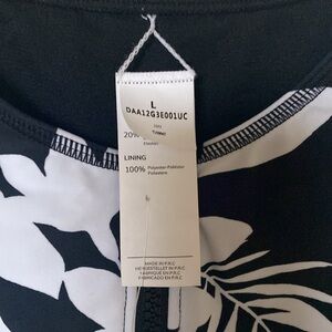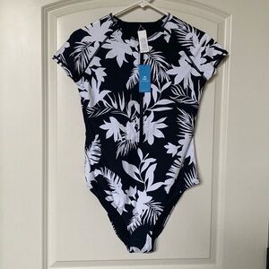 NWT CUPSHE floral zip front swimsuit Womens L Black/White bathing suit modest