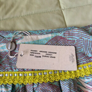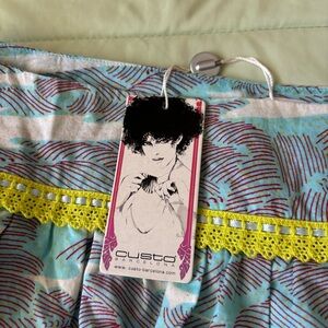 Such a fun skirt! Love the print, and the neon lace. Super lightweight and breathable, 100% cotton.