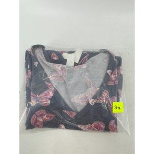 NWT CY Fashion Women's Blue Pink Butterfly Print Shirt Top Twist Front Size S