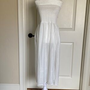 NWT CYN & Luca Swim Cover Up dress Women’s White Smocked Sheer Beach Sz M