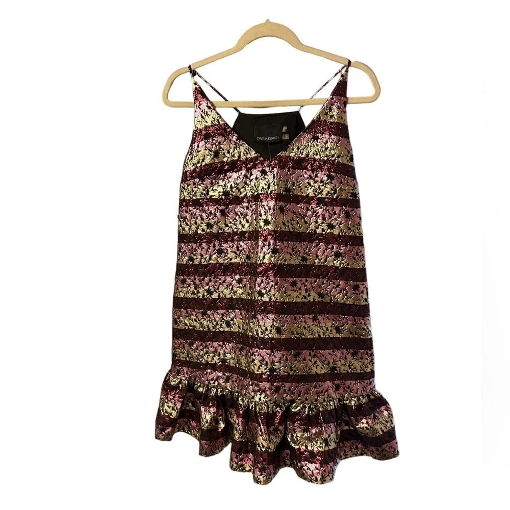 Brand new with tags. Floral metallic dress. Womens size 2. Super cute ruffle hem.
