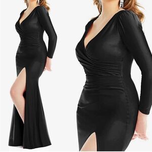 Yasmeen - Suitable for any special occasion, this stunning full-length gown features long sleeves with a delicate shirring detail. Cut from a luxe stretch satin fabric for a glamorous effect, this show-stopping mermaid dress offers a surplice bodice that reaches the floor with an alluring front slit. A full-back and included additional cups provide extra support and coverage.