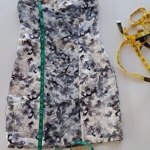 NWT CYNTHIA STEFFE GRAY CREAM STRAPLESS SHEATH DRESS FLORAL CHIFFON SATIN SIZE 8