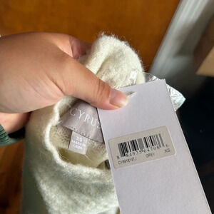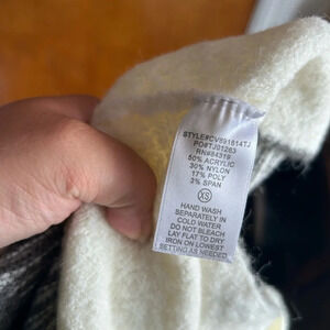 Brand new with tags. Gorgeous white and gray mock neck color block sweater. Super soft and warm. WOMENS size xs but oversized. Can fit up to a size medium.