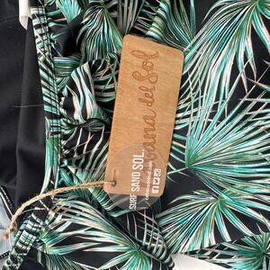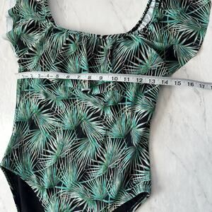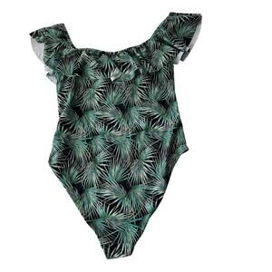 NWT Cabana del Sol swimsuit womens black one piece large tropical ruffles