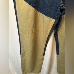 Indigo color with dark stone nylon facing on the front legs and back bottom leg
