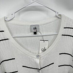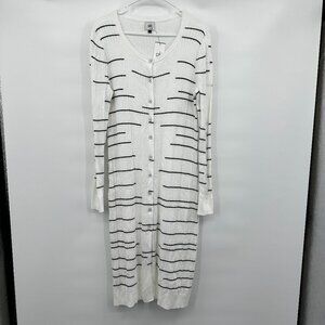 NWT Cabi #5638 Dashes Ribbed Duster Cardigan White Striped MEDIUM Sweater