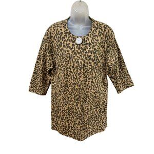 NWT Cabi By Carol Anderson Leopard Print 3/4 Sleeve Jacket M Cotton Blend Womens