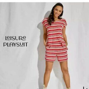 NWT Cabi Leisure Playsuit #6220 Haute Red White Striped Medium