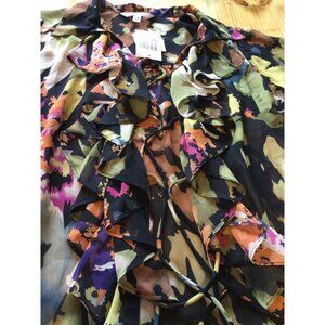 New with tags. Cabi Sheer Blouse. Beautiful floral print. Open front, with ties. Size XS
