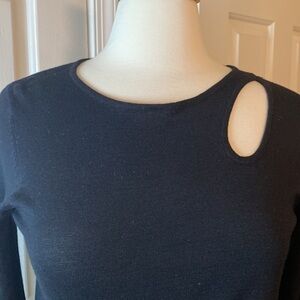 Lovely black sweater with a pop of skin showing on the collar bone area. Perfect for an evening out or work.