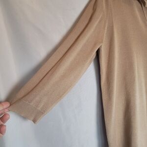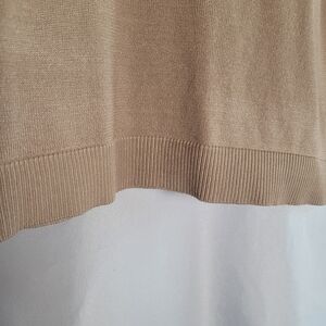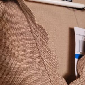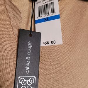 New with tags Cable & Gauge 3/4 Sleeve Scalloped Detail Top. Women's size XL. Color is called Camel. Has a decorative scalloped collar and neckline. Measurements are approximate and are shown in photos.