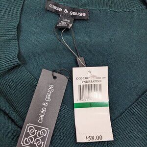 NWT Cable & Gauge Womens V-Neck Long Sleeve Sweater Pullover Green Hi Lo L