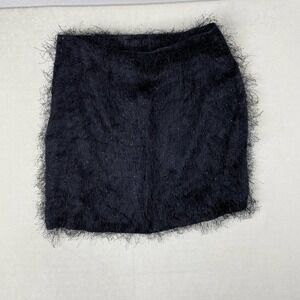 NWT Cache Black Long Tinsel Fringe Short Mini Skirt- Small