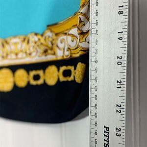 NWT Cache Cowl Neck Baroque Print Top S Aqua Black Gold Scroll Stretch Shirt Y2K