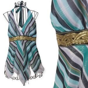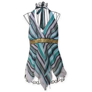 Cache Halter Top Size 10 Handkerchief Hem Striped Metallic Waist Chiffon New with Cache tags 128.00