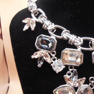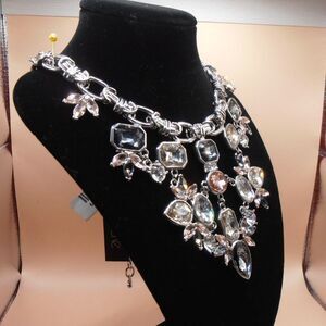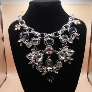 NWT Cache Rhinestone Bib Statement Necklace - Pink/Grey/Clear Stones Silver Tone