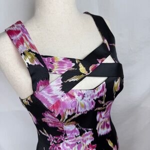 NWT Cache Sleeveless Knee Length Dress Black Pink Floral Size 12