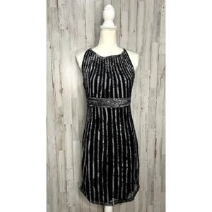 NWT Cache Women's Size 8 Black & White Striped Sleeveless Cocktail Dress