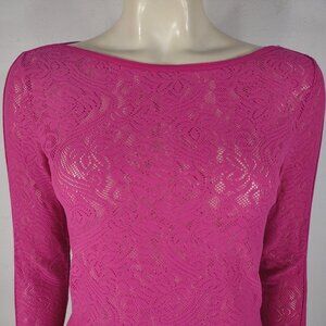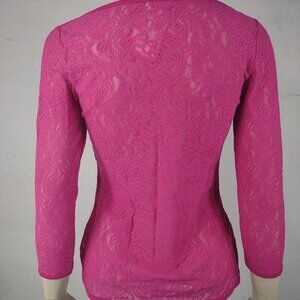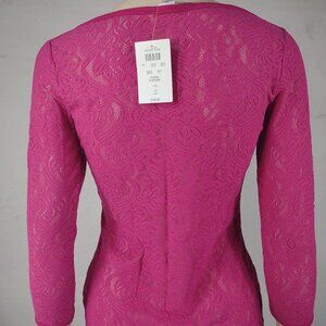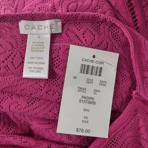NWT Cache pink sheer laser cut stretch lace tee blouse shirt ladies XS