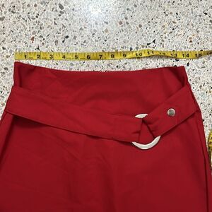 NWT Cache red mini skirt silver ring 0 back zip holiday