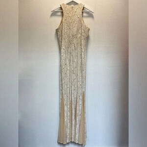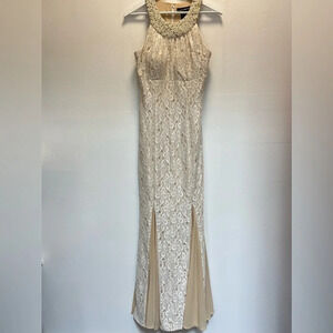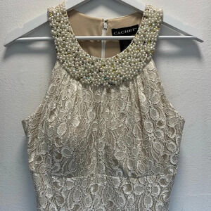 NWT Cachet Lace Dress with pearl neck and godet mesh inset