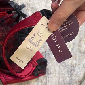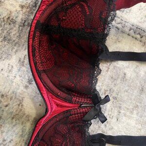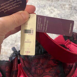 NWT Cacique 36DDD Red & Black Lace Quarter Cup Bra Sexy Gothic Bows