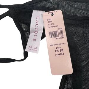 NWT Cacique Black Bow Embroidered 2 Piece Baby Doll Negligee Size 18/20 Women’s