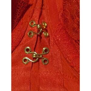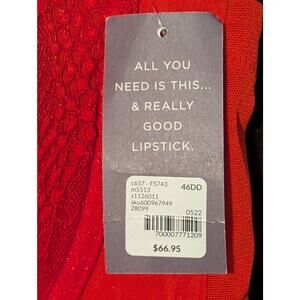 Cacique by Lane Bryant red lace bra, designed specifically for full-figure comfort and support. This size 46DD bra features supportive underwire cups with a flattering push-up shape, accented by elegant floral lace and modern strappy detailing with gold hook and eye ornamental detailing in front. Adjustable straps and a secure band provide all-day comfort while maintaining a sleek, confidence-boosting silhouette.