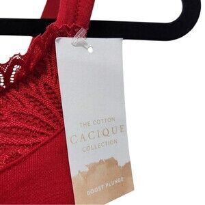 NWT Cacique Cotton Collection Boost Plunge Red Lace Bra Size 34H Sexy Glam