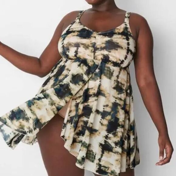 NWT Cacique Mesh Flyaway No-Wire Swim Dress Size 32