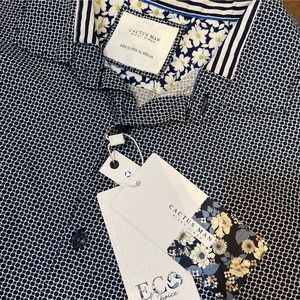 NWT Cactus Man Navy & White Geometric Pattern Dress Shirt Size XL