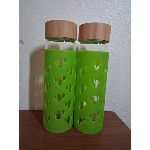 NWT Cactus Water Bottle Bundle Rustic Western Y2K Silicone Glass 2 Pack Green